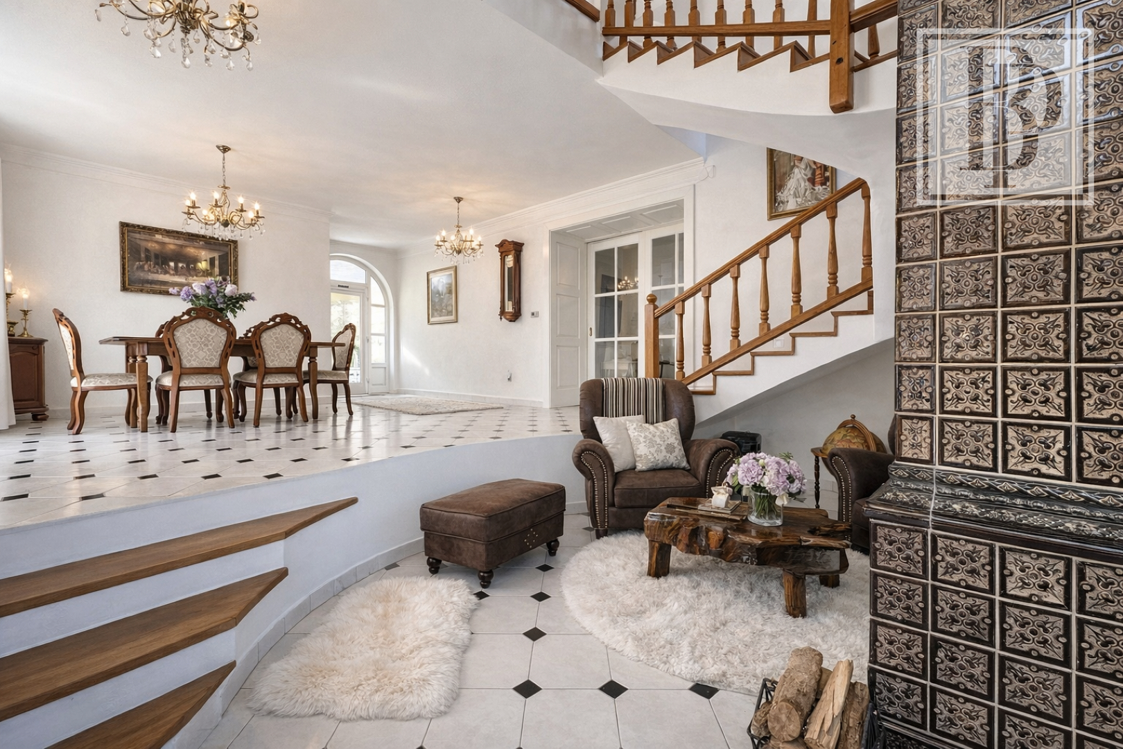 - spoločenská miestnosť s krbom a pecou