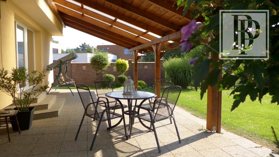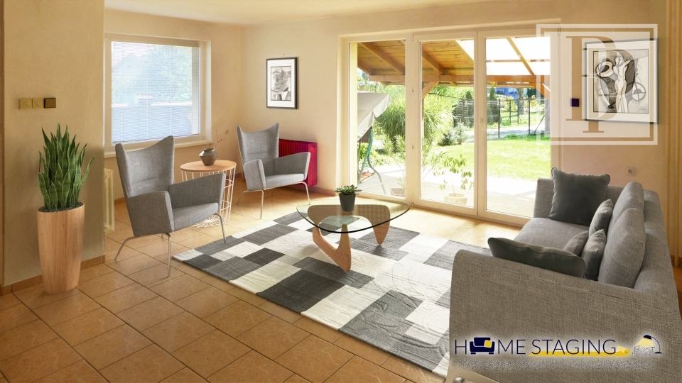 Majiteľom sa podarilo vniesť do projektu členitosť a originalitu. Spodná spoločenská miestnosť s výstupom na terasu na prízemí má štandardnú svetlú výšku, hlavný obytný priestor s obývačkou, kuchyňou, jedálňou, izbami a kúpeľňou s toaletou sa nachádzajú na poschodí a vďaka tomu pôsobí celý priestor domu vzdušne a ponúka dostatok prirodzeného svetla na denné aktivity. Pani domáca má priamo v relaxačno-oddychovej miestnosti na prízemí výhľad na celú záhradu a prehľad o tom, čo deti na záhrade robia.